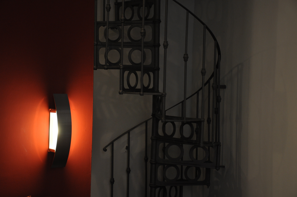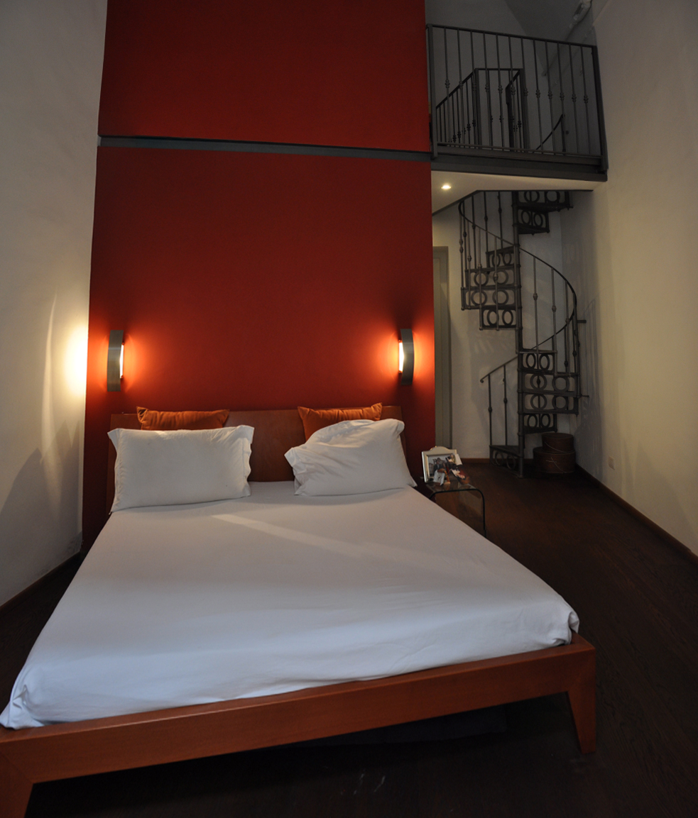 The mezzanine became the main element and we decided to give to the metallic stairscase a strong aesthetic impact.