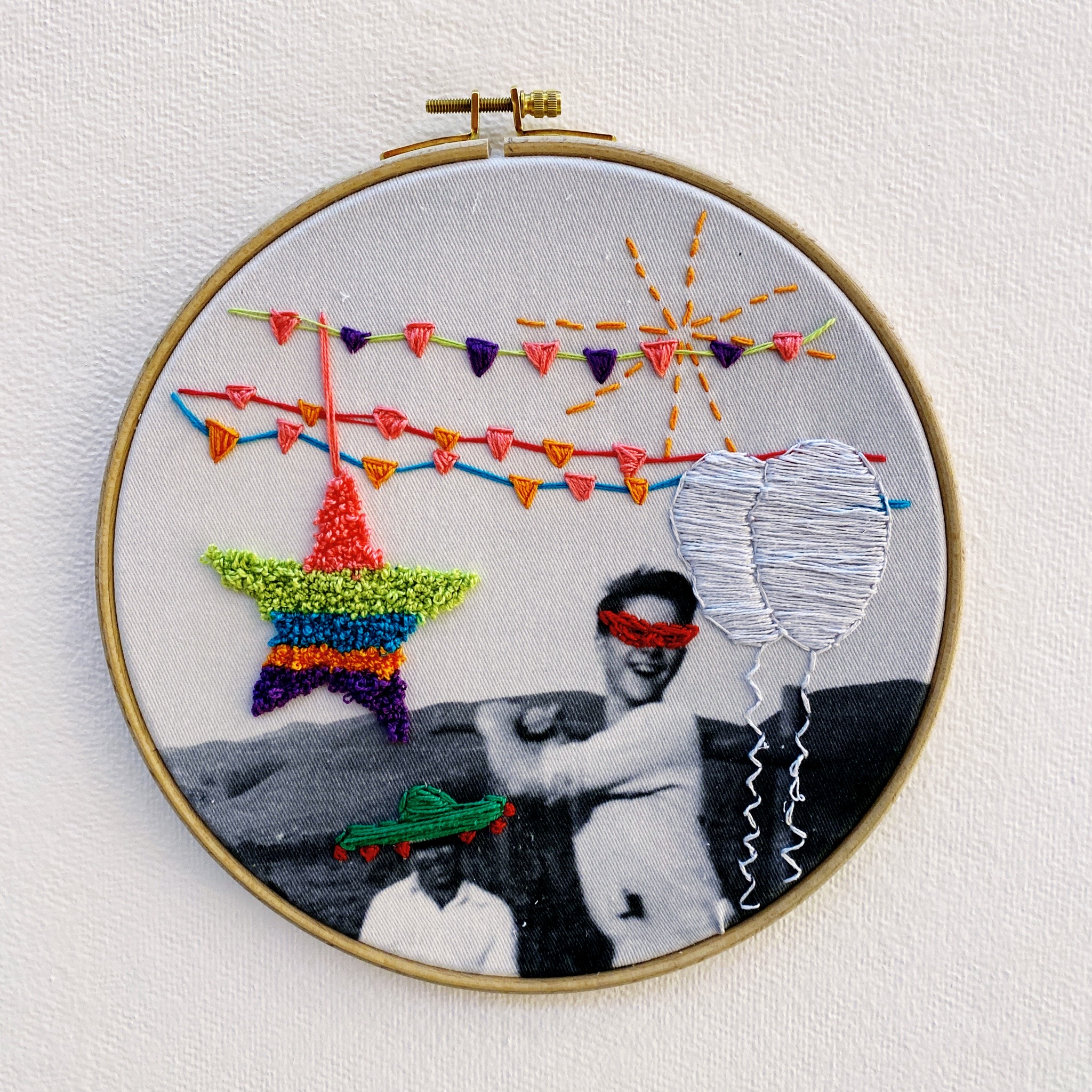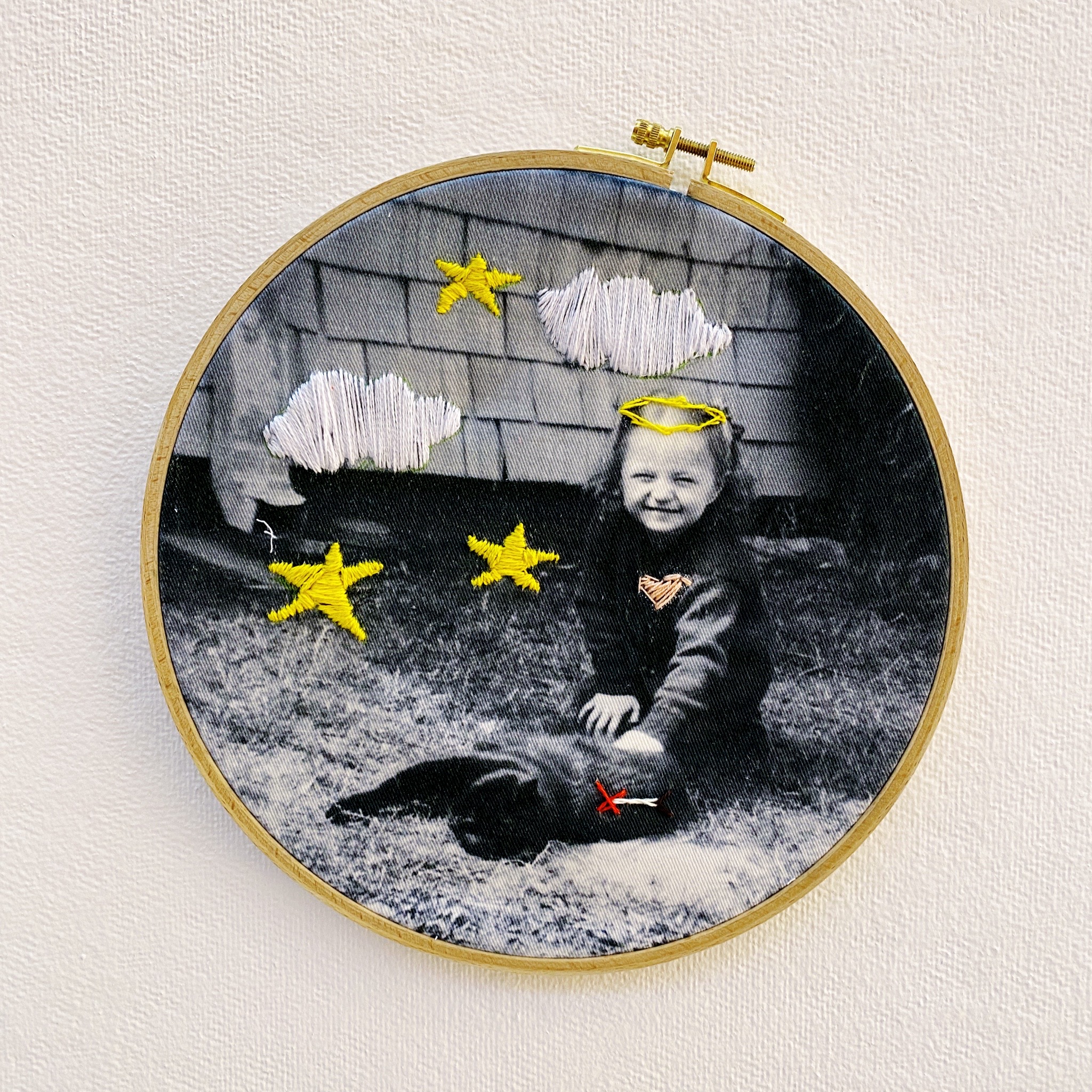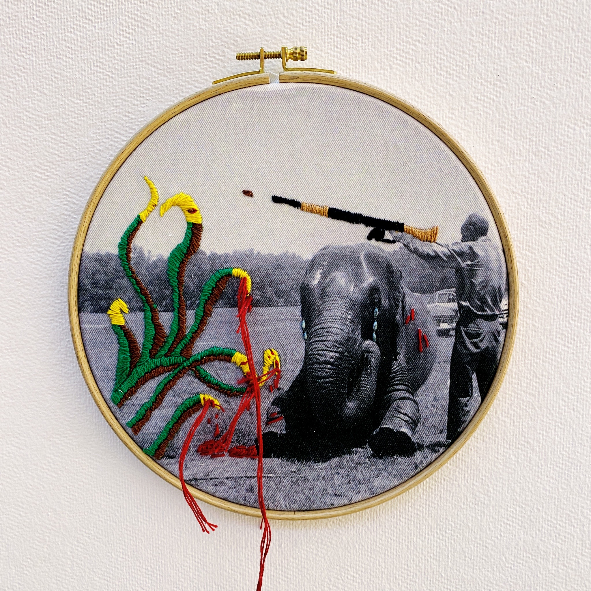 The embroidery was our tool to twist the story; adding, erasing, and embellishing these images with colored threads could give the story new or more profound meaning.
