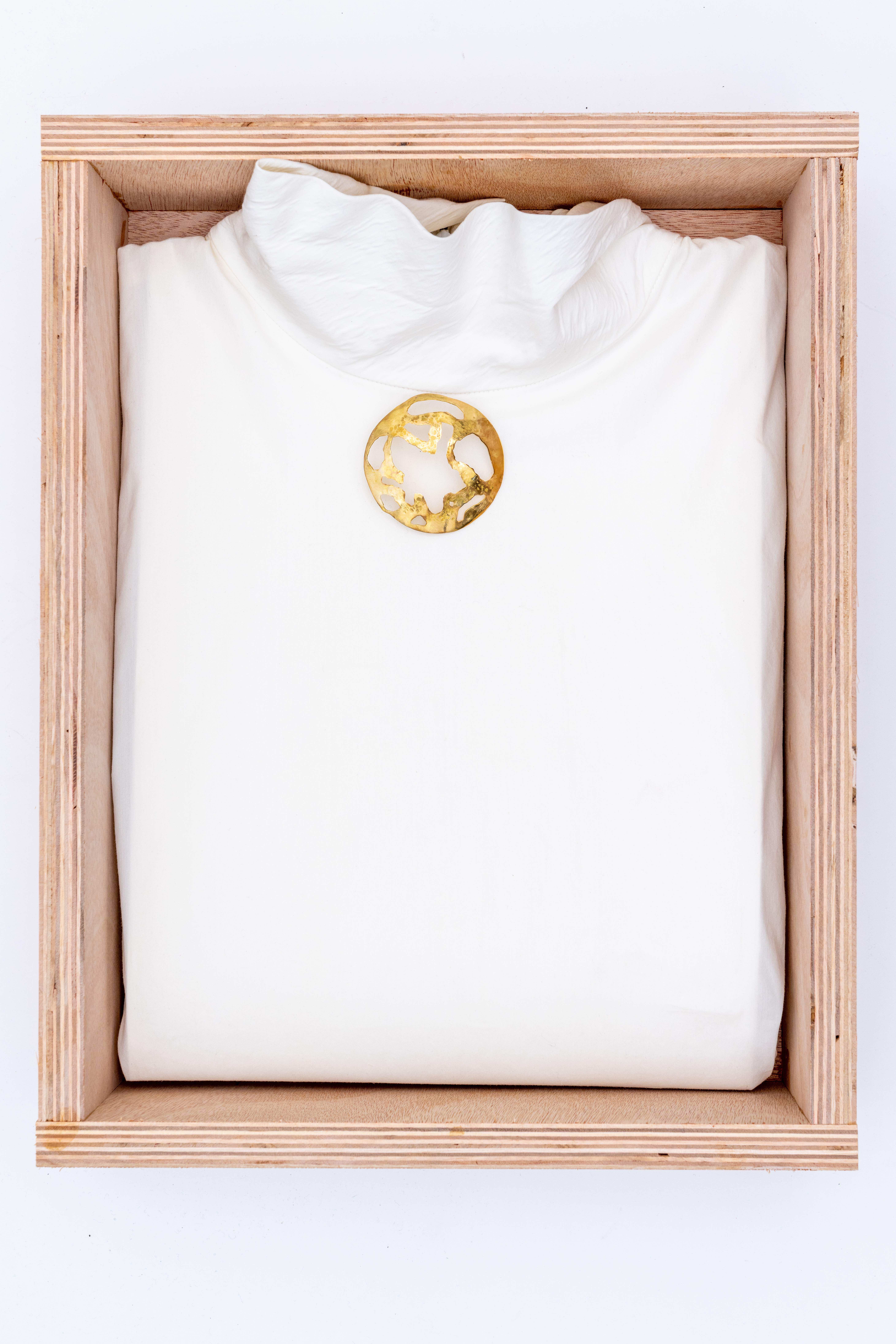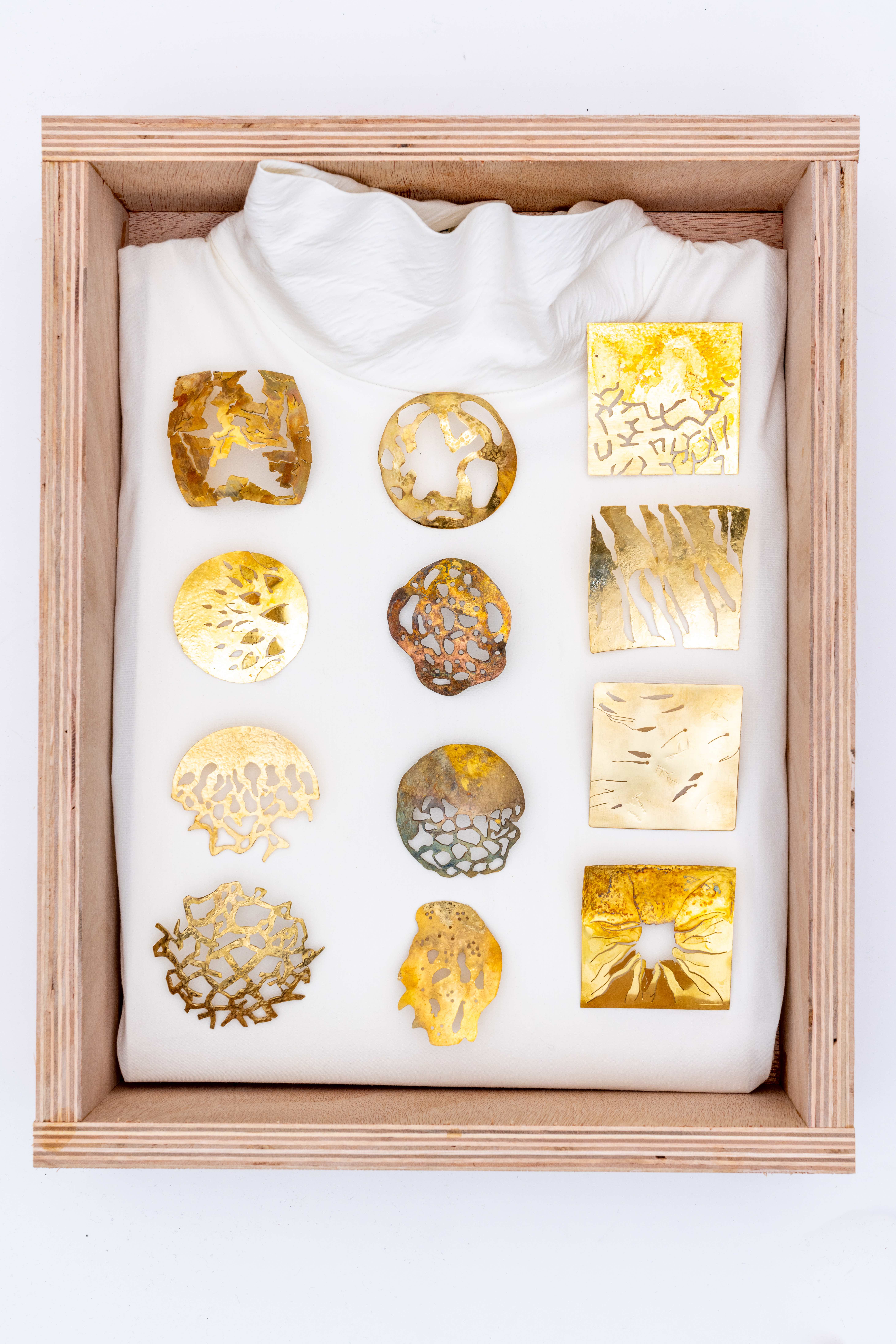 Erosion, a force of nature, sculpts landscapes over time, leaving behind intricate patterns and textures. Imagine capturing this essence in a wearable piece of art – a brooch that embodies the quiet elegance of nature's patient hand. Your task is to conceptualize a design that mirrors the gradual wearing away of material, revealing a captivating story etched in brass.