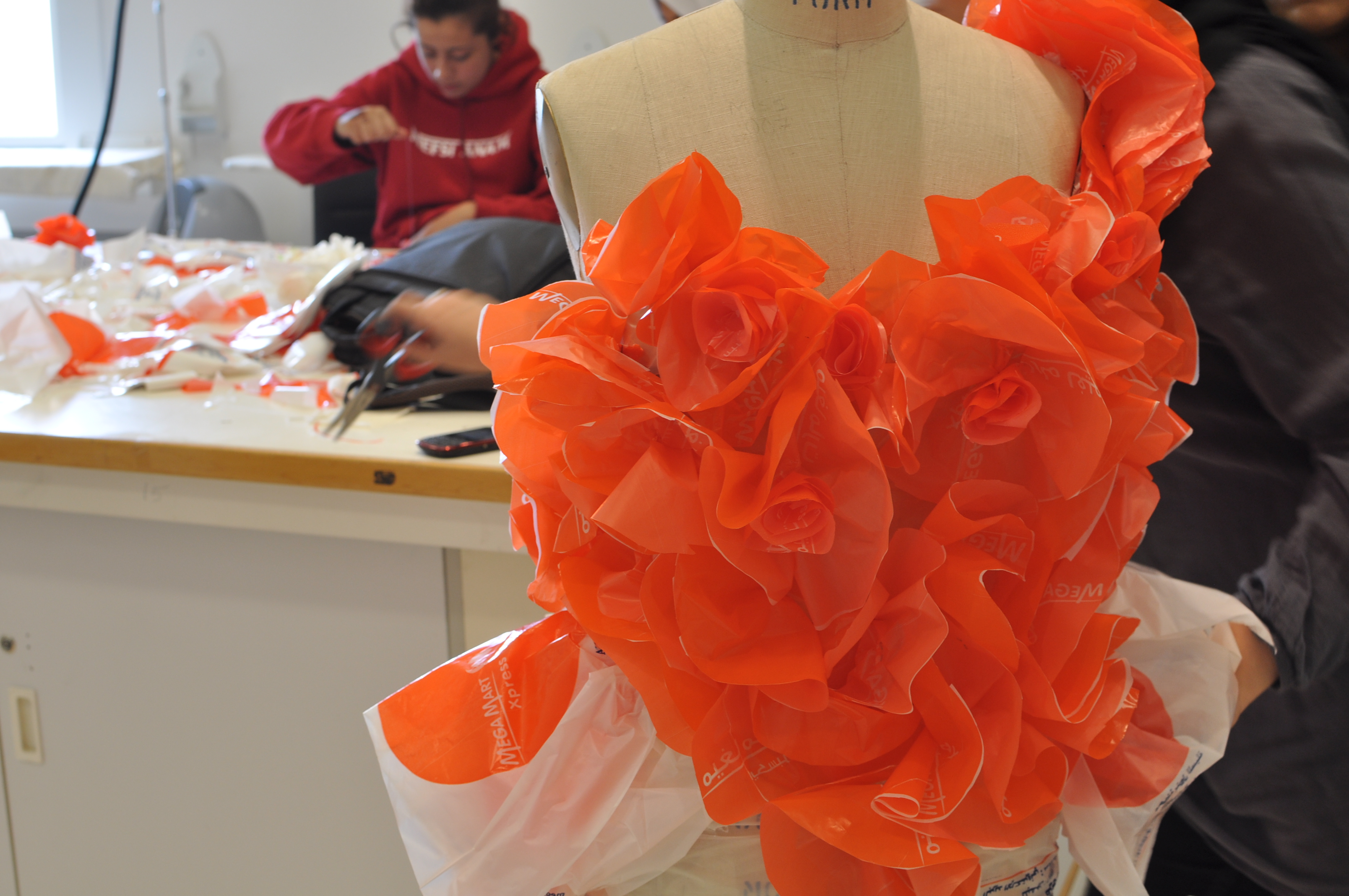 Three days only to design a full garment out of shopping plastic bags, style the outfit inside a photostudio and play around with the images and promote the collection into a magazine.